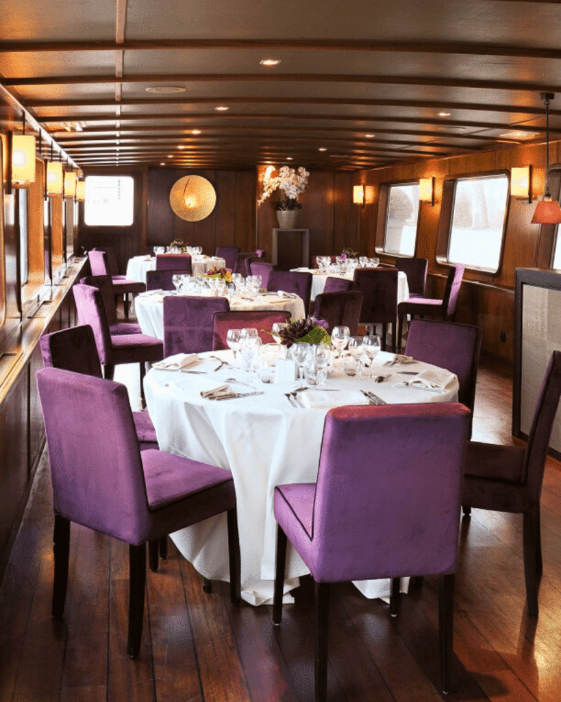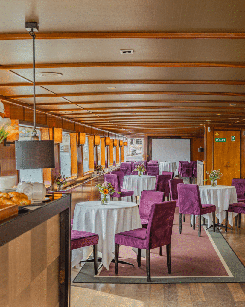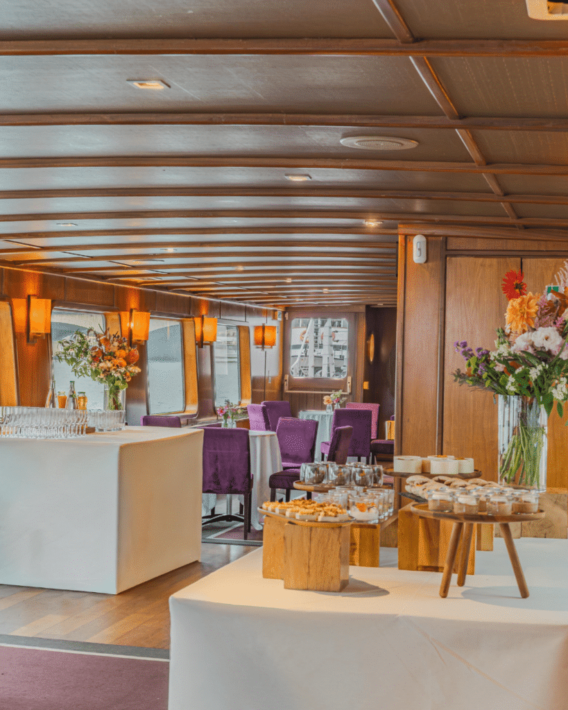 Plongez dans l’authenticité d’une véritable péniche parisienne entièrement habillée de bois. Sa salle de réception en acajou, à la fois chic et intimiste, crée un cadre chaleureux et élégant pour accueillir vos invités.