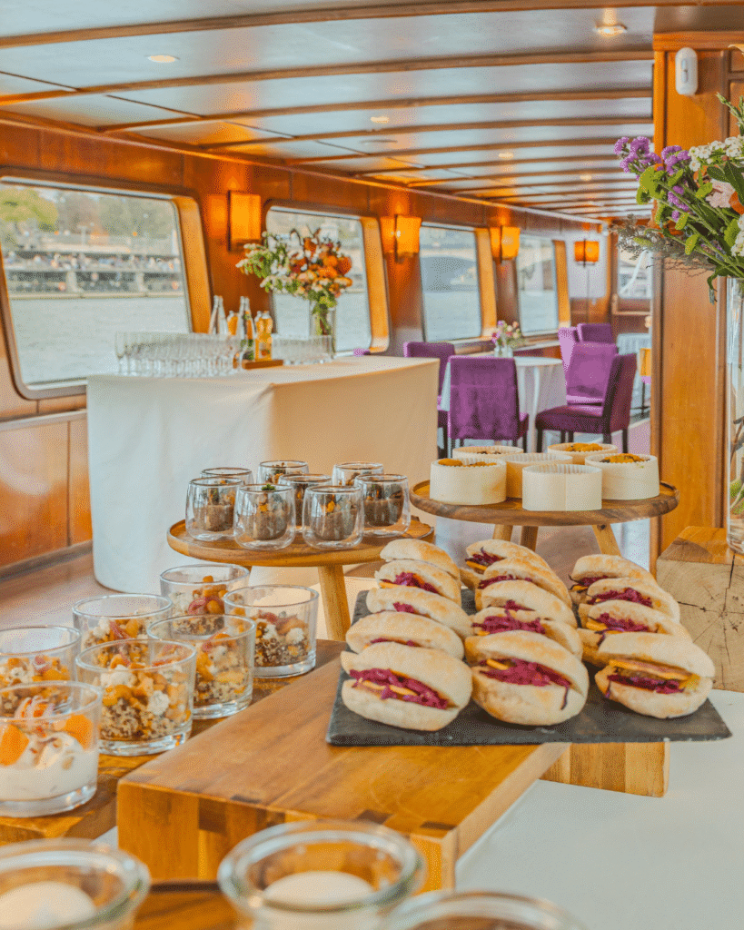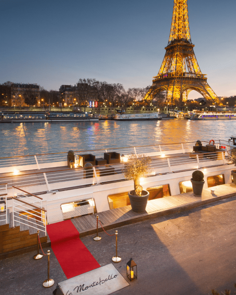 Amarré au cœur de Paris, Le Montebello séduit dès le premier regard avec son charme intemporel. Doté d’une terrasse entièrement aménagée offrant une vue directe sur la Tour Eiffel, ce bateau chaleureux crée un écrin d’exception pour vos événements les plus marquants : dîner d’entreprise, anniversaire intimiste, afterwork entre collègues ou croisière élégante sur la Seine.