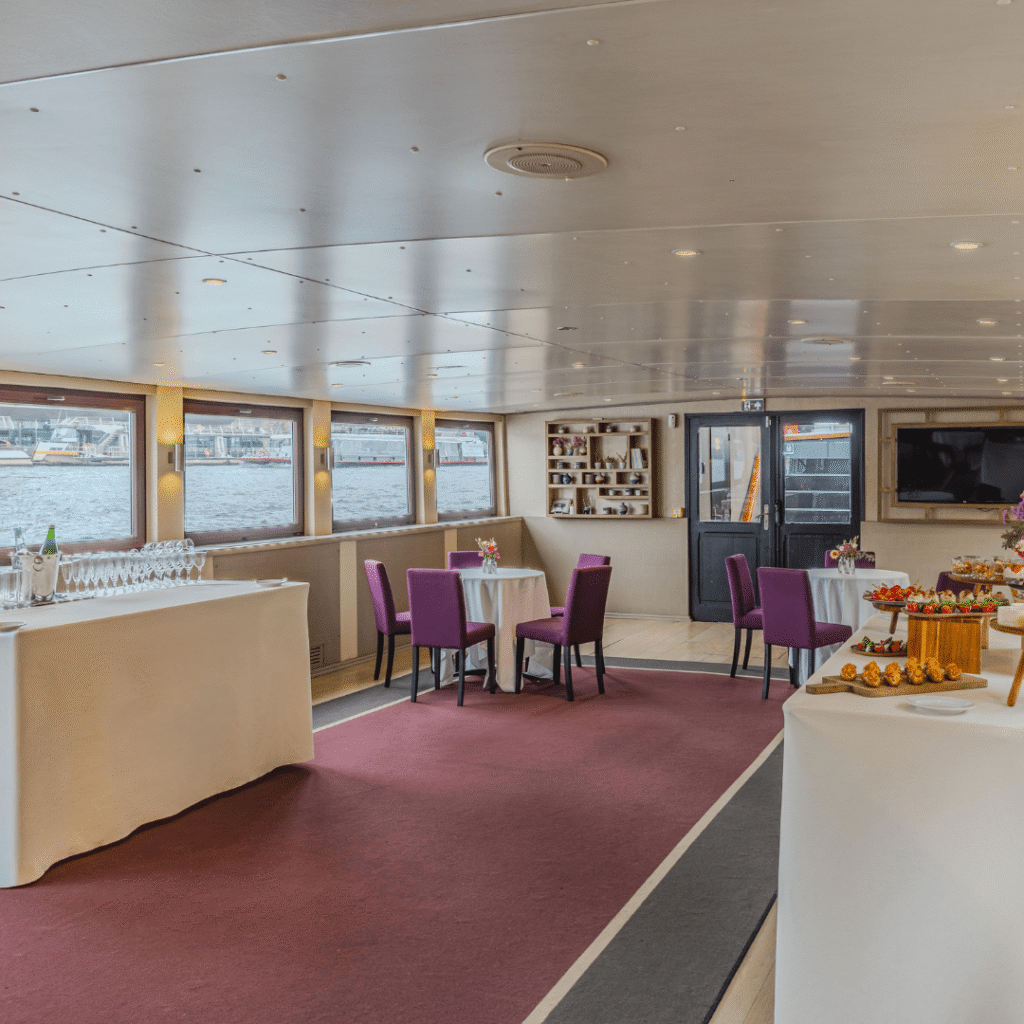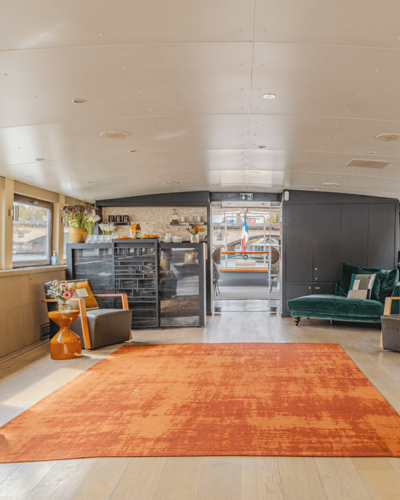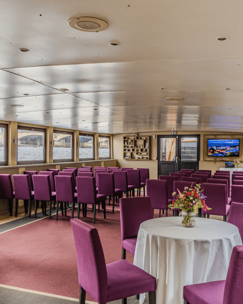 Amarré face à la Tour Eiffel, Le Signac dévoile une atmosphère cosy et chaleureuse grâce à ses deux ponts feutrés et ses terrasses multiples. Ce bateau élégant offre un cadre idéal pour accueillir vos invités lors de vos plus beaux événements : dîner d’entreprise, anniversaire intimiste, afterwork entre collègues ou croisière privative au fil de l’eau.