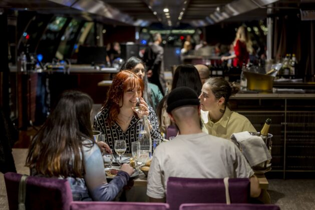Montez à bord de notre bateau, et profitez d’un décors Art Nouveau qui vous plongera dans une atmosphère de la Belle Epoque. Grâce à notre chanteuse live, vous vivrez un dîner croisière unique et festif tout au long de votre croisière.