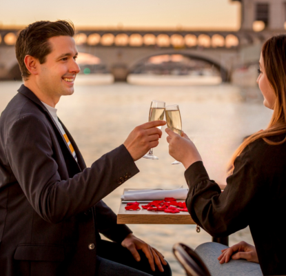 Pour les Amoureux, Paris Seine a créé le Dîner Romantique par excellence ! A bord d’une péniche vous êtes aux premières loges pour admirer Paris. Savourez un repas au Champagne et admirez la Ville Lumière à travers les baies vitrées de l’un des bateaux de notre flotte.